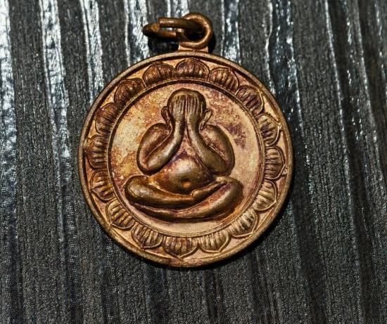 เหรียญปิดตาหลวงพ่อเกษม ปี 2521 เนื้อทองแดง ตอกโค๊ต สวยเดิม |