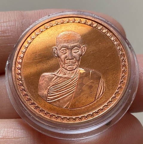 เหรียญหลวงปู่แหวน สุจิณฺโณ วัดป่าเจริญธรรม เชียงใหม่ ปี2517 เนื้อทองแดง ตอกโค๊ต |