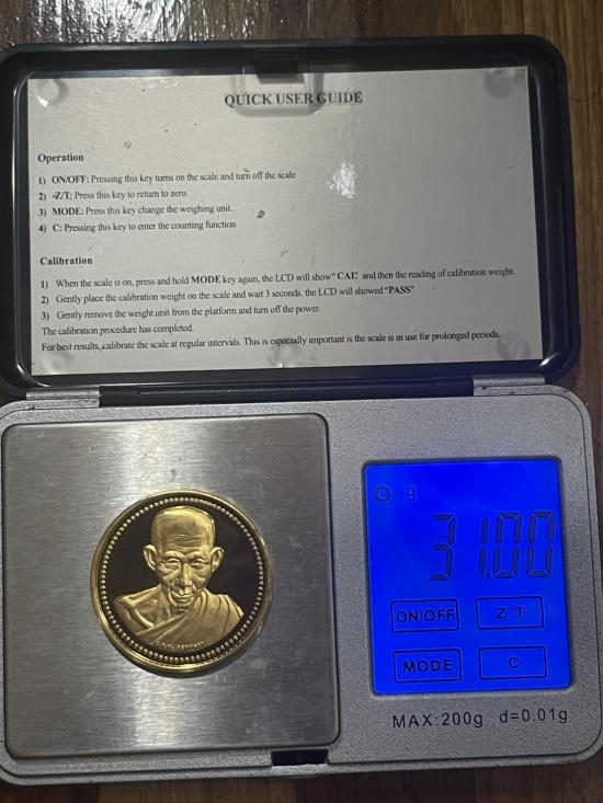 เหรียญม.ต.เสาร์5 หลวงพ่อเกษม ปี37 (เนื้อทองคำ)99.83% หนัก 31.00 g |
