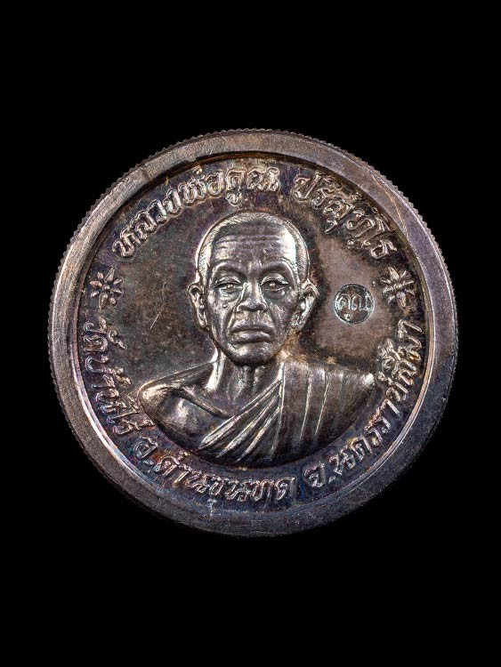 ปั๊มรูปเหมือนหลวงพ่อคูณ วัดบ้านไร่ รุ่นแรก (เทพประทานพร) เนื้อเงิน ก้นตอกโค้ด ปี 2536 |