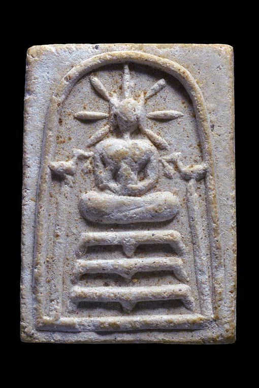 พระพิมพ์เม็ดน้อยหน่า ( เนื้อผงสีขาวทารักกรรมการ , 1.1 x 2 ซ .ม. - หนา 0.5 ซ.ม. ) ที่ระลึกงานฉลองอุโบสถ วัดนครอินทร์ นนทบ ุรี ปลุกเสกโดย หลวงพ่อคูณ พ.ศ.2527 ( พระติดซุ้มพระเครื่องหลั งมีคราบกาว ) *3* |