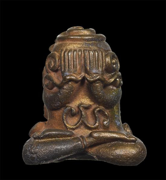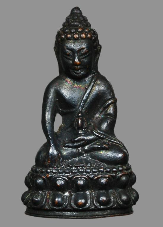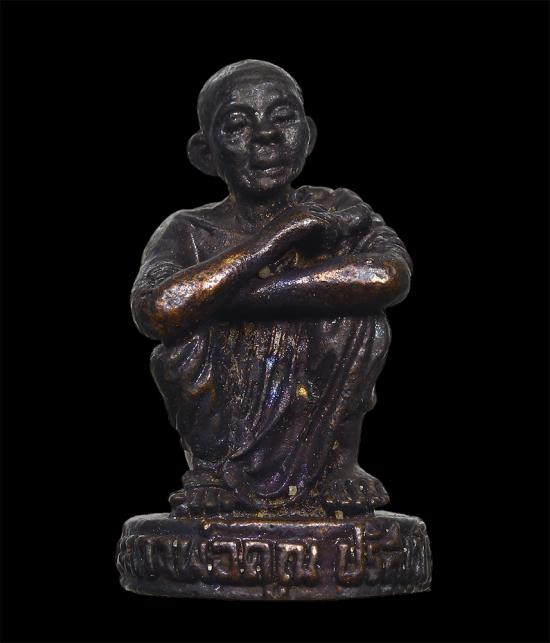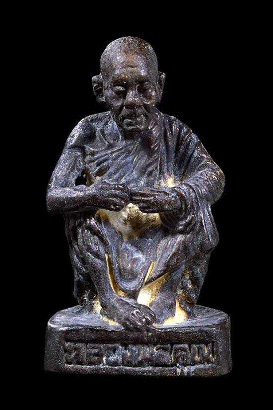 รูปหล่อนั่งบริกรรมคาถาชักประคำ ( เนื้อโลหะผสม ) พ.ศ.2533 ( กล่องเดิม ) |