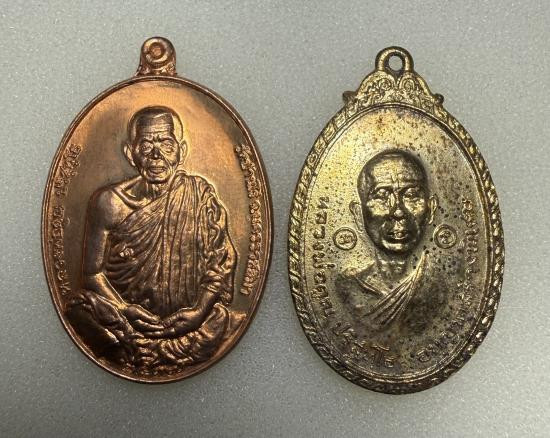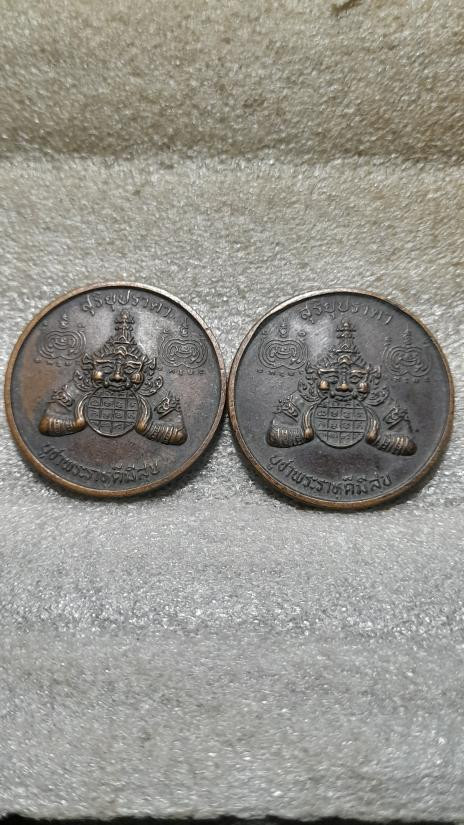 เหรียญรัตนตรัย หลวงพ่อคูณ ปริสุทโธ วัดบ้านไร่ เนื้อทองแดงรมดำ เลี่ยมพลาสติก ทีเดียว 2 เหรียญ |