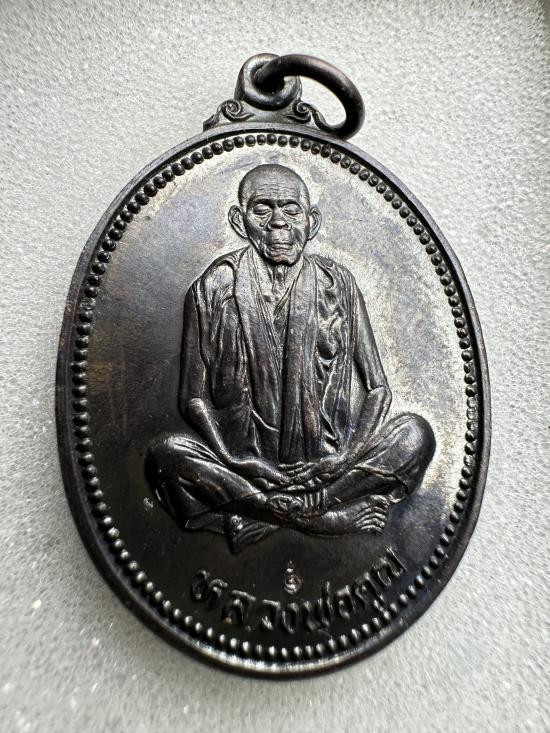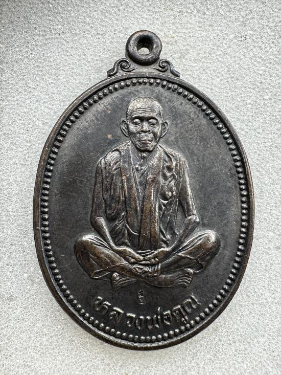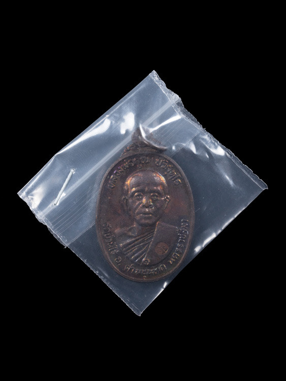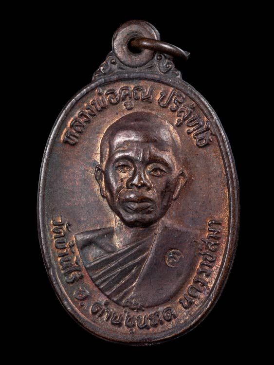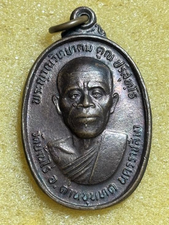 เหรียญหลวงพ่อคูณ วัดบ้านไร่ พิมพ์สายฝน เนื้อทองแดง ปี 2517 จ.นครราชสีมา พร้อมเลี่ยมทอง |
