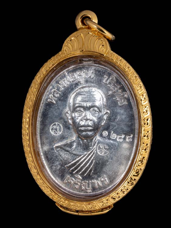 50.-/// เหรียญหลวงพ่อคูณ วัดบ้านไร่ รุ่น กูช่วยชีวิตมึง เนื้อเงิน ปี38+กล่องหนังกำมะหยี่เดิมๆ |