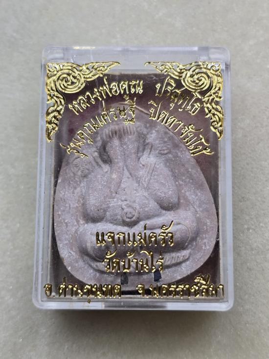 พระปิดตาคูณลาภ หลวงพ่อคูณ วัดบ้านไร่ จ.นครราชสีมา ปี2533 (อุดฝาแผ่นเงิน กล่องเดิม สภาพสวย นิยม) |