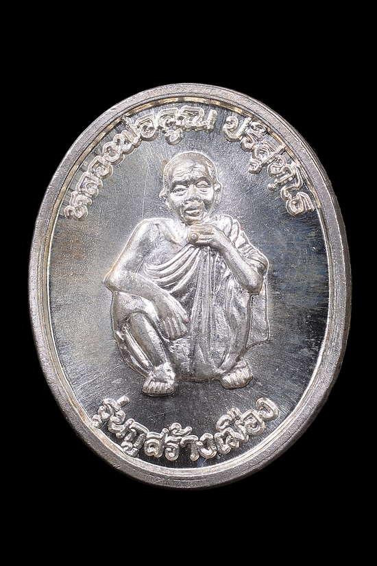 เหรียญเอกลักษณ์นั่งยอง หลวงพ่อคูณ ปริสุทโธ รุ่น 6 รอบ (กํานันน้องสร้าง) "เนื้อเงิน" |
