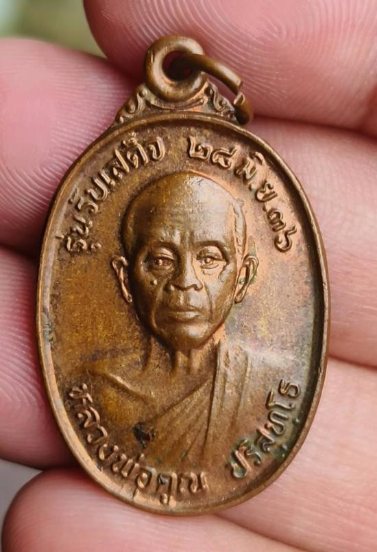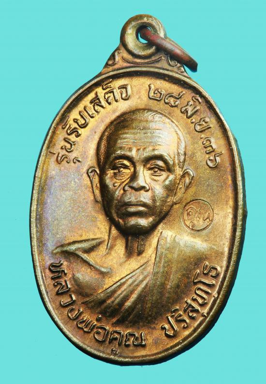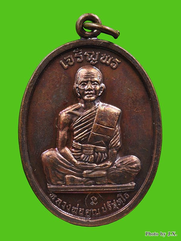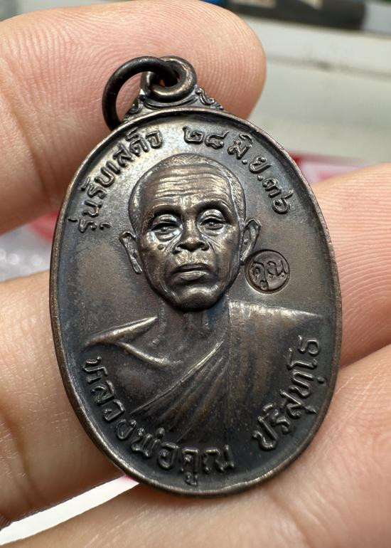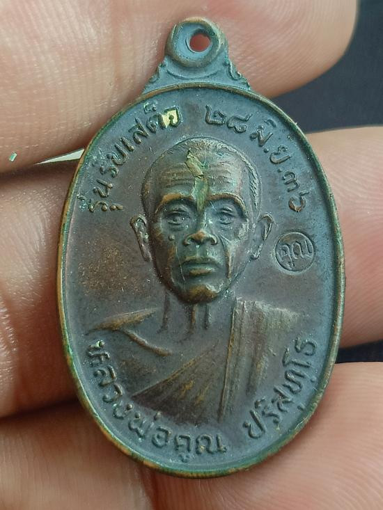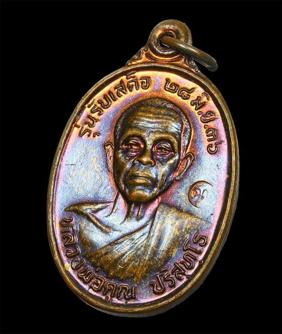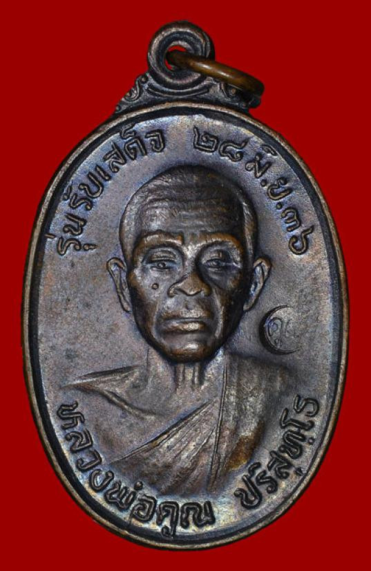 วัดใจแดงแรก เหรียญหลวงพ่อคูณ วัดบ้านไร่ รุ่นคุณพระ เทพประทานพร พิมพ์รูปไข่ เนื้อทองแดง สวยงาม ปี2536 |