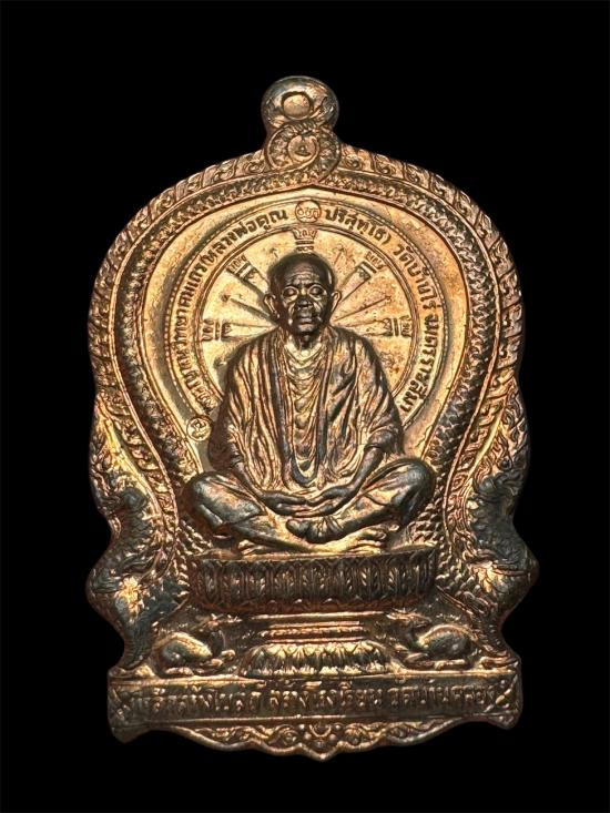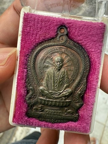 วัดใจ เหรียญนั่งพาน วัดบ้านคลอง เนื้อทองแดง ปี2537 |