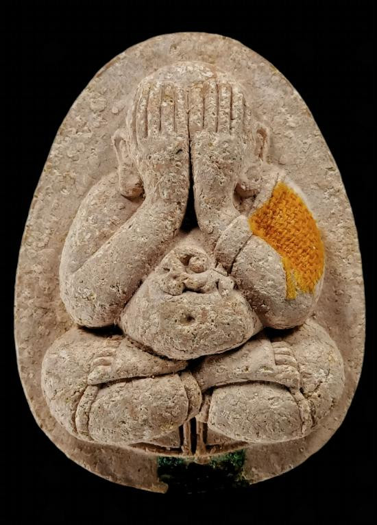 พระปิดตามหาลาโภคูณลาภ หรือพระปิดตายันต์ยุ่ง หลวงพ่อคูณ วัดบ้านไร่ ปี 36 เนื้อเงิน (สร้างไว้แค่ 300 องค์เพียงเท่านั้น) สภาพสวยมาก โค๊ดชัดเจน คำว่า " คูณ" ตอกติดเต็ม (หายากในองค์ที่ตอกติดเต็ม 100 เปอร์ |
