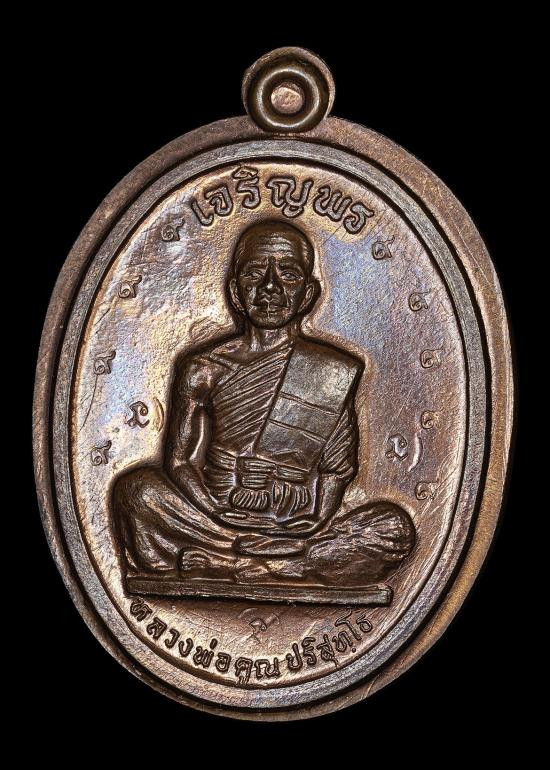 เหรียญหลวงพ่อคูณ วัดบ้านไร่ รุ่นเทพประทานพร เนื้อทองฝาบาตร ปี 2536 จ.นครราชสีมา ( แดงวัดใจ 100 ) |