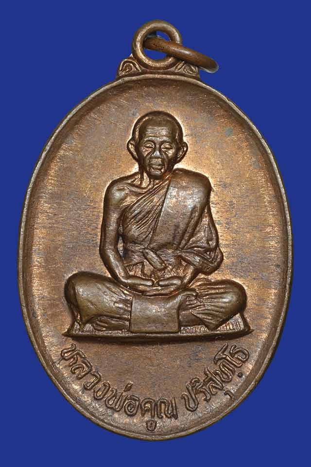 เหรียญนั่งพานหลวงพ่อคูณ วัดบ้านไร่ รุ่นนั่งพานชนะมาร เนื้อทองแดง ปี 2537 จ.นครราชสีมา หมายเลข 18455 |