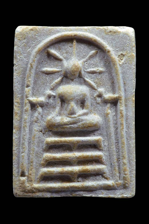 พระพิมพ์จันทร์ลอย ( พิมพ์ใหญ่ แบบที่ 2 , เนื้อก้นครก ) ปลุกเสกโดย หลวงพ่อคูณ ที่ระลึกงานฉลองอุโบสถ วัดนครอินทร์ จ.นนทบุรี พ.ศ.2527 ( สร้างไม่เกิน 10 องค์ ) |