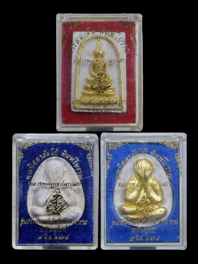 พระปิดตาจัมโบ้ เนื้อผง 1 องค์ + เนื้อผงทารักปิดทอง 1 องค์ / สมเด็จ เนื้อผงลงรักปิดทอง 1 องค์ ปลุกเสกโดย หลวงพ่อคูณ รุ่น พุทโธ - ธัมโมรวย พ.ศ.2538 ( กล่องเดิม , รับพระ 3 องค์ ) ** 2 ** |