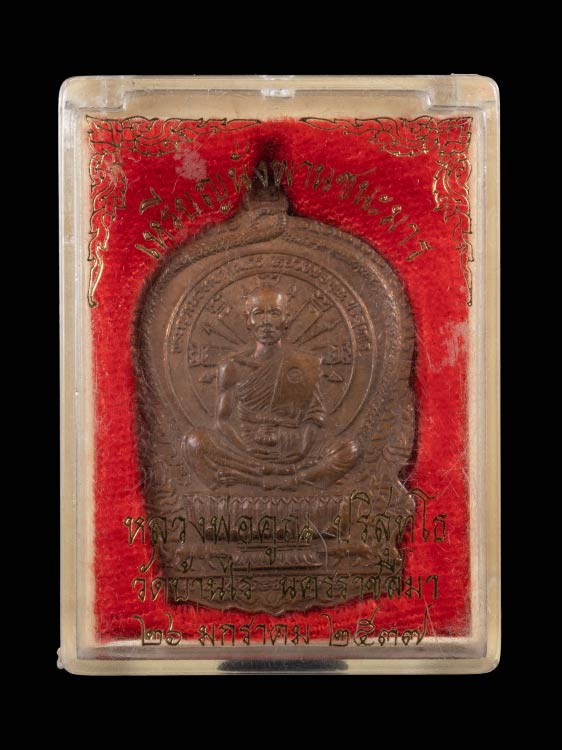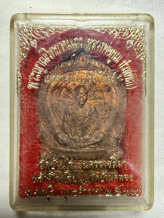 เหรียญนั่งพาน วัดบ้านคลอง เนื้อทองแดง พร้อมกล่องครับ |