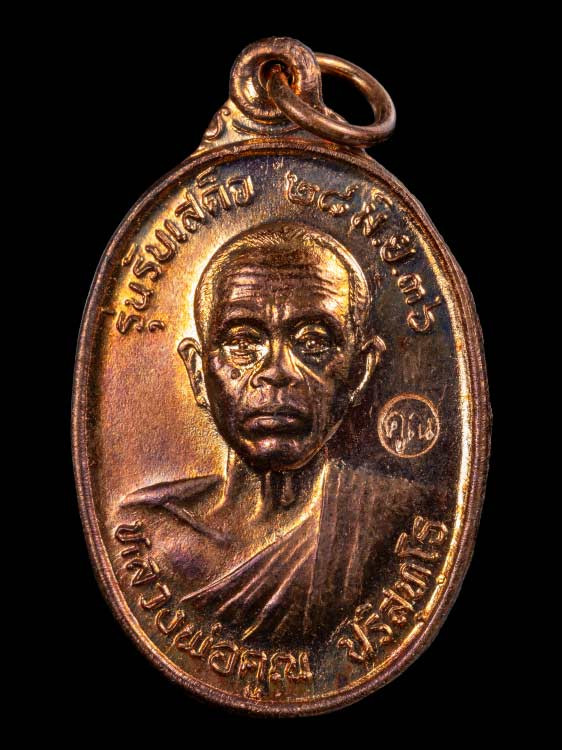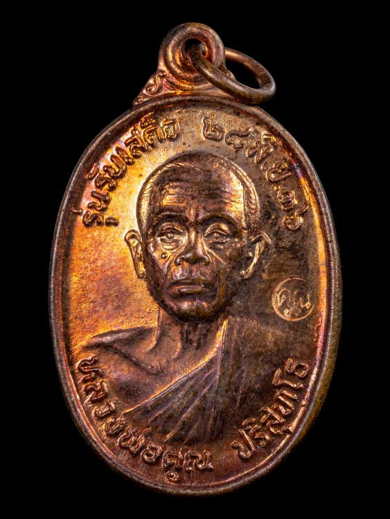 เหรียญหลวงพ่อคูณ เจริญพรบนเต็มองค์ ตัวหนังสือโค้ง เนื้อทองแดงรมดำ บล็อกแรก โค๊ต ๙ 9 ตัว ปี 36 (เคาะเดียวแดง) |