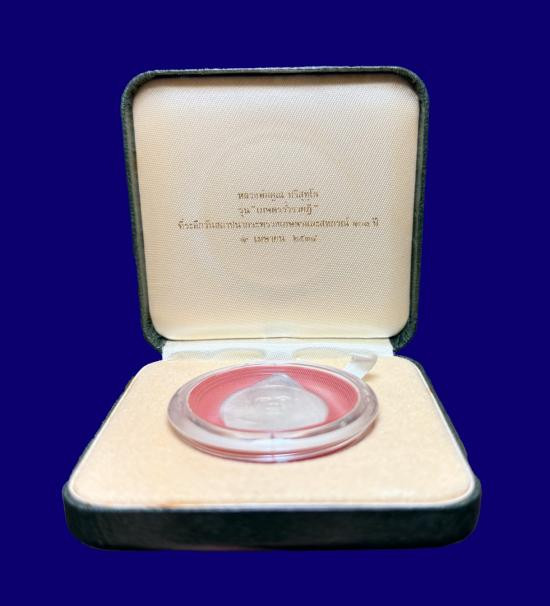 เหรียญเสมา รุ่น มงคลจักรวาล คูณพูนทวี ผู้จัดสร้าง บ. ยูไนเต็ดมอเตอร์เชลส์ จำกัด มิตซูบิชิ( เนื้อเงินลงยาน้ำเงิน ) พ.ศ.2538 ( กล่องเดิม ) |