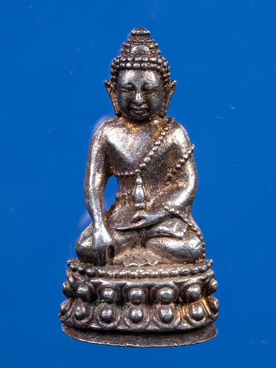 รูปหล่อจิ๋ว ถือไม้เคาะหัว รุ่น มั่งมีทวีคูณ ปี๒๕๓๙ เนื้อเงิน เนื้อนวะ |