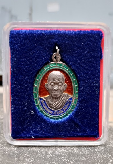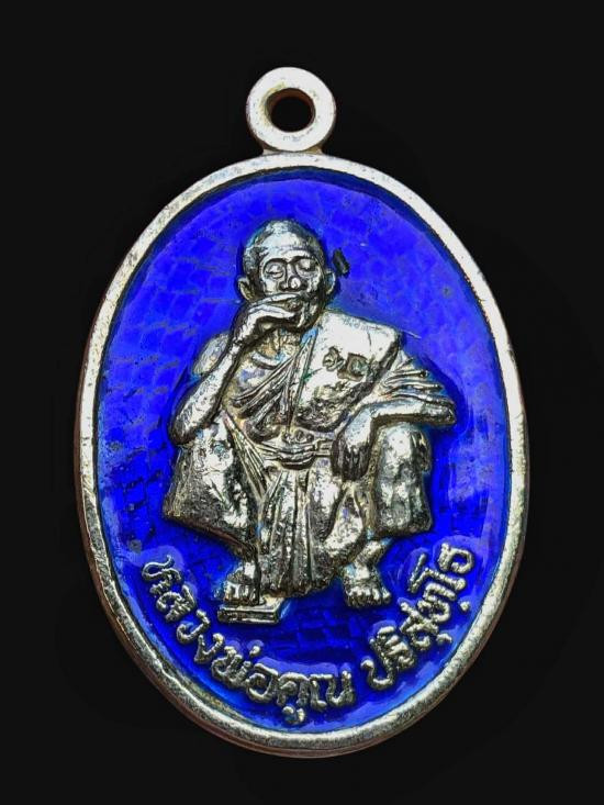 หลวงพ่อคูณ 6 รอบ วัดบ้านไร่ เนื้อเงิน ลงยาสีน้ำเงิน (น้ำหนักเหรียญ 18.5 กรัม) หมายเลข 2410 (กำนันน้องเป็นประธานจัดสร้าง) ผิวสวย เดิมๆ มาพร้อมกล่อง |