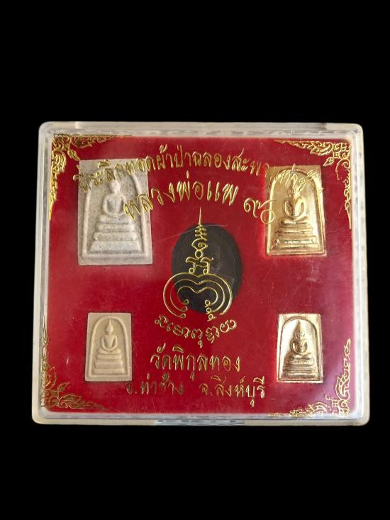 สมเด็จแพ 9 พัน เนื้อลายรัศมี ปี 2536 หลวงพ่อแพ วัดพิกุลทอง สิงห์บุรี 10 องค์ สภาพสวยสมบูรณ์พร้อมกล่องเดิม |