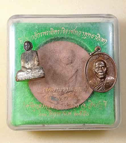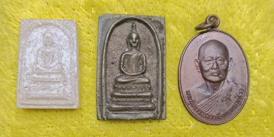 พระรูปหล่อปั้มรุ่นแรก + ผงกลมรูปเหมือน หลวงพ่อแพ + เหรียญหลวงพ่อเพี้ยน ปี 60 |