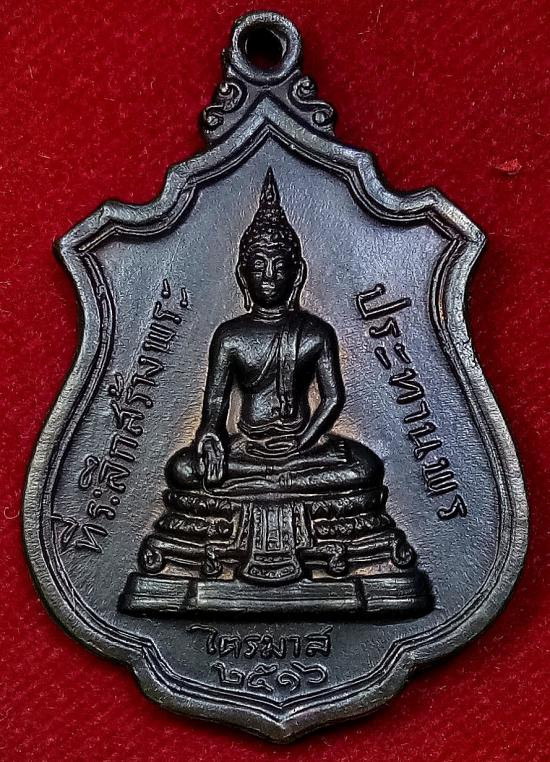 เคาะเดียวแดง...เหรียญไตรมาส(M16) หลวงพ่อแพ วัดพิกุลทอง จ.สิงห์บุรี ปี2513 เนื้อทองแดงรมดำผิวสวยเดิม |
