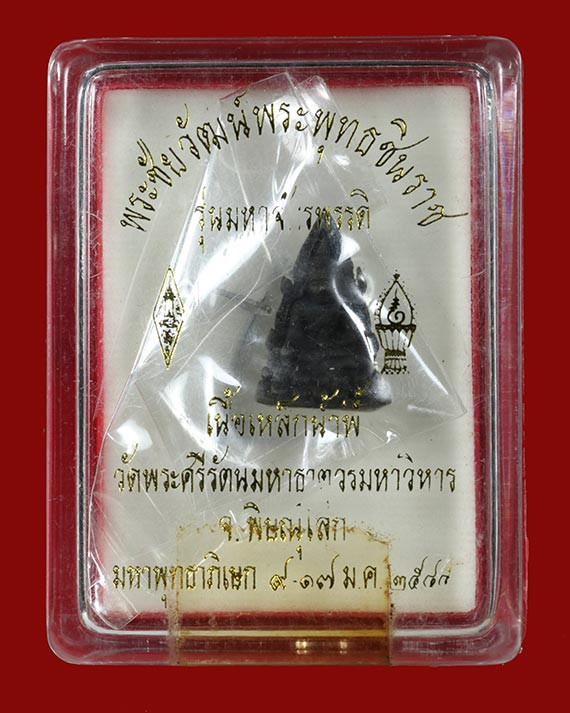 รูปหล่อโบราณพระพุทธชินราชอินโดจีน รุ่นมหาสิทธิโชค เนื้อชนวน พิมพ์เล็ก หมายเลข 842 สภาพสวยเดิมๆพร้อมกล่องครับ |