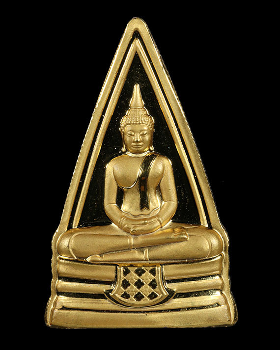 พระพุทธโสธรเนื้อผง หลังสมเด็จพระเจ้าตากสินมหาราช พิมพ์สี่เหลี่ยมฝังตะกรุดทองคำ ปี 2538 สภาพสวยเดิม พร้อมกล่อง |