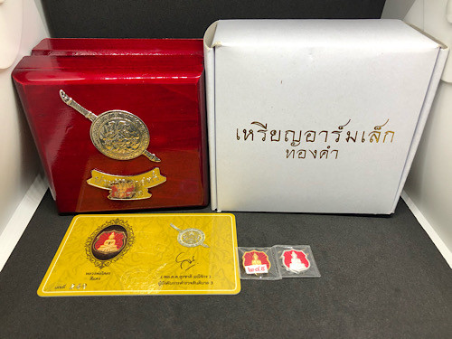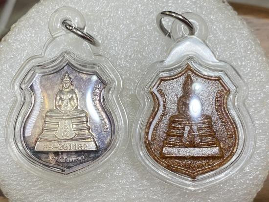 เหรียญหลวงพ่อพุทธโสธร สธ.เหรียญอาร์มเนื้อเงินและเนื้อกระเบื้องหลังคาโบสถ์ ปี2538 พิธีใหญ่ พร้อมกล่อง |