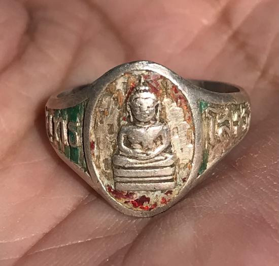 แหวนพระพุทธโสธร เนื้อเงินลงยา ปี 2503 วัดโสธรฯ จ.ฉะเชิงเทรา สภาพสึก แหวนโดนตัดตามภาพครับ |