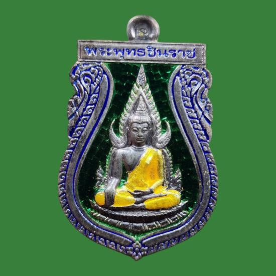 ( เลข 1659 ) เหรียญโล่ห์พระพุทธชินราช หลังยันต์วิเศษอกเลาโภคทรัพย์ เนื้อทองทิพย์ลงยาสีเขียว เหนี่ยวทรัพย์ รุ่น สมโภชพระพุทธชินราช ครบ ๖๖๖ ปี |