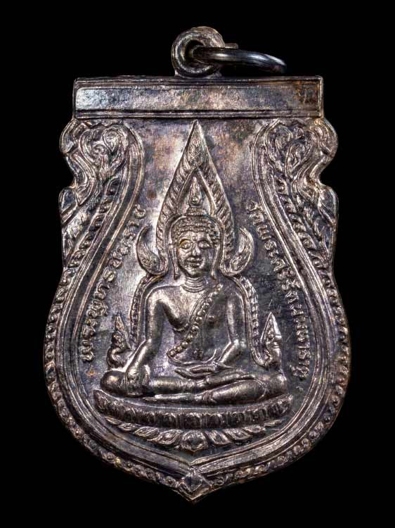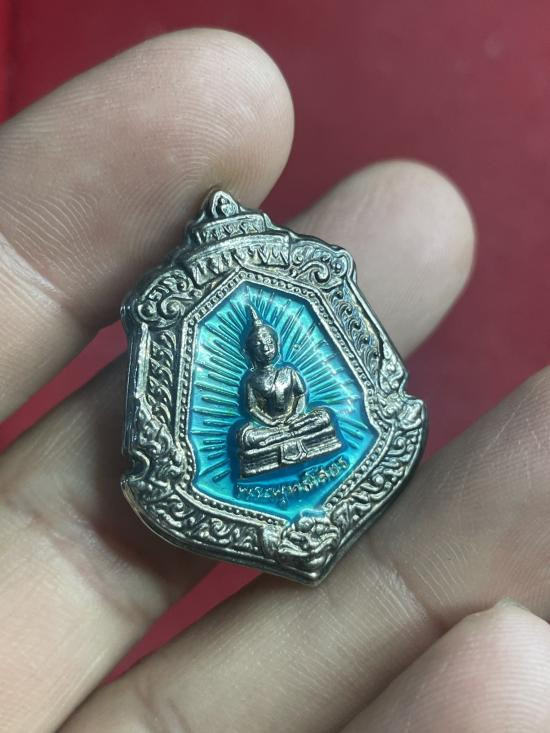 พระพุทธชินราชใบเสมา ย้อนยุค เนื้อชินเงิน ปรอทขาว รุ่นประทานพร ปี 47 พร้อมกล่องเดิม |