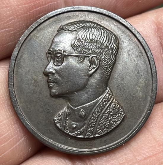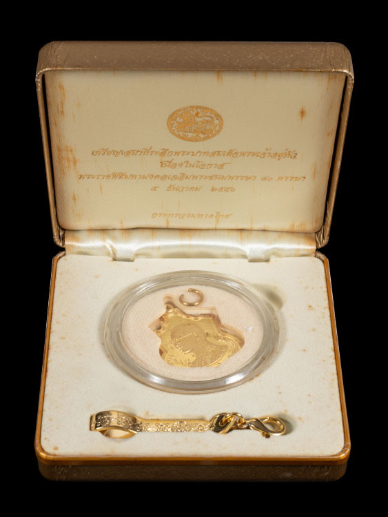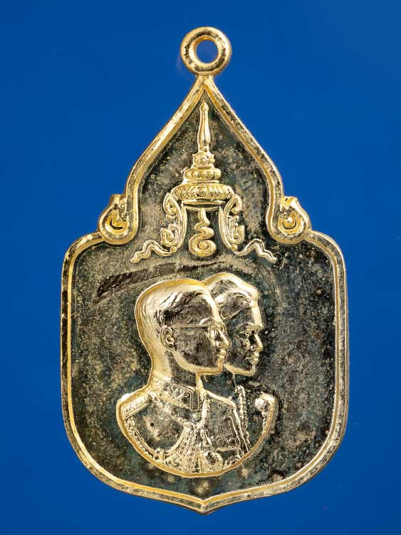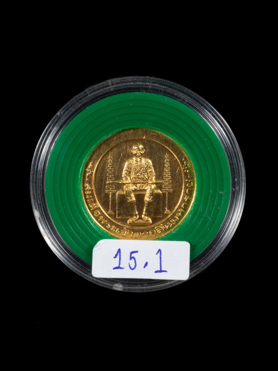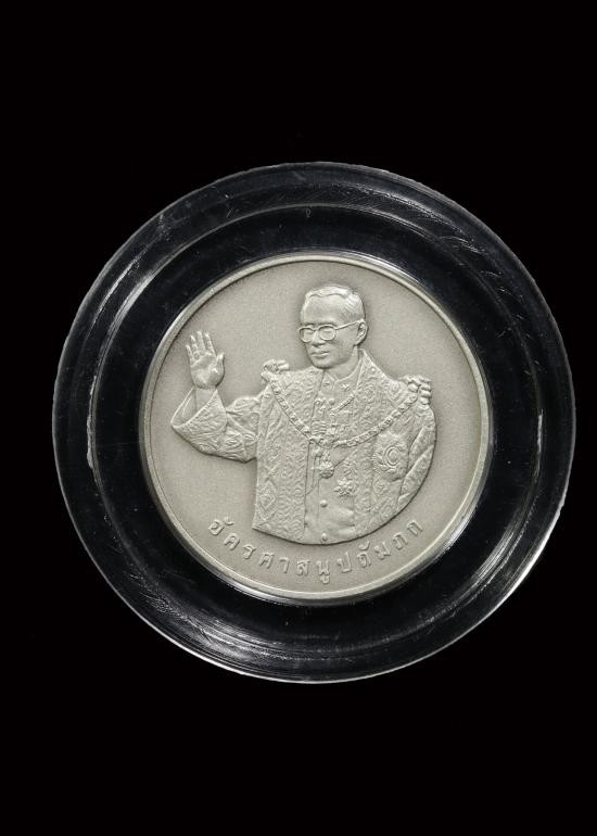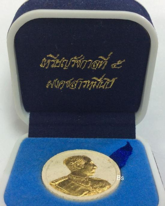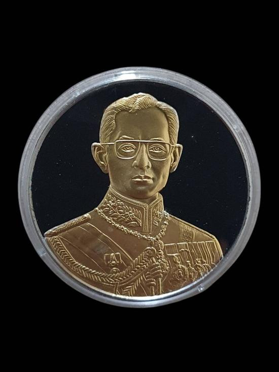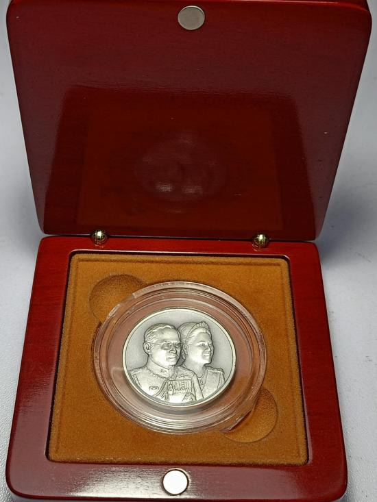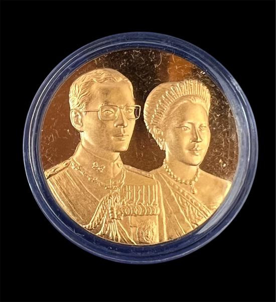เหรียญแสตมป์ในหลวง ร.9 เนื้อเงินบริสุทธิ์ ชุบทองคำสวิส 999.9 ที่ระลึกในงานฉลองศิริราชสมบัติครบ 50 ปี |
