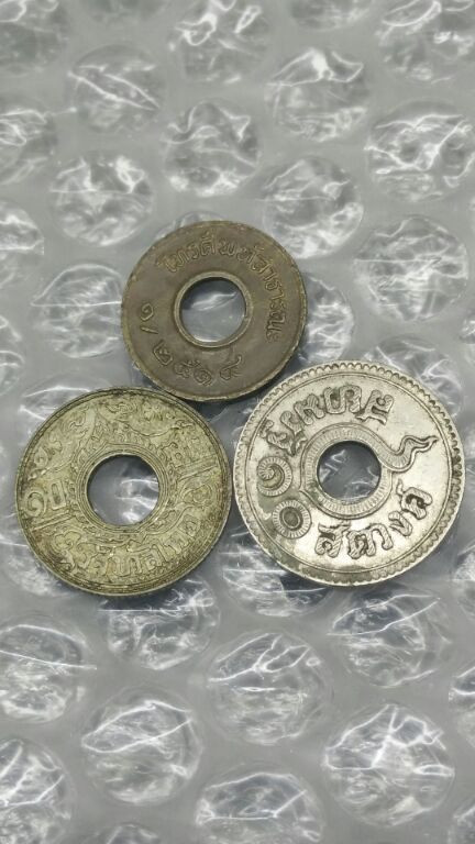 เหรียญ 1 เฟื่อง ร.5 + 2 เหรียญสลึง ร.6 เนื้อเงินรวม 3 เหรียญ |