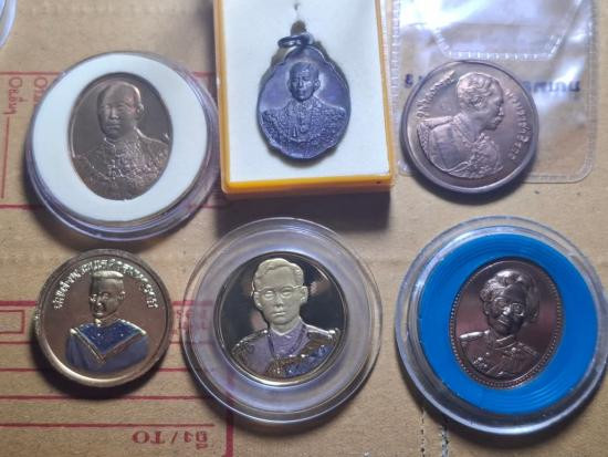 เหรียญพระชัยหลังช้าง 5เหรียญ หลัง ภปร.4 เหรียญ สก 1 เหรียญ |