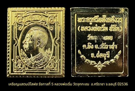เหรียญแสตมป์โสฬส รัชกาลที่ 5 - หลวงพ่อเริ่ม วัดจุกกะเฌ อ.ศรีราชา จ.ชลบุรี ปี2536