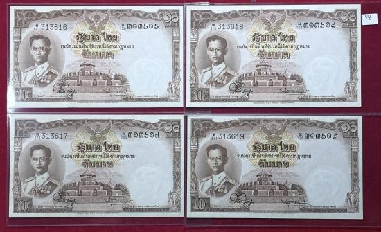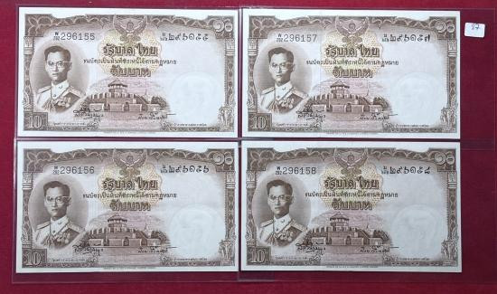ธนบัตร 10 บาท แบบ9 พิมพ์โทมัส จำนวน 4 ใบเรียงเลข สภาพใหม่สวยตามรูป |