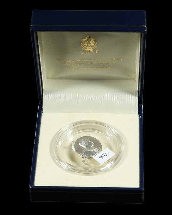 เนื้อเงินสวย เหรียญทรงงาน ทรงศิระเพราะพระบริบาล กล่องเดิมครบ |