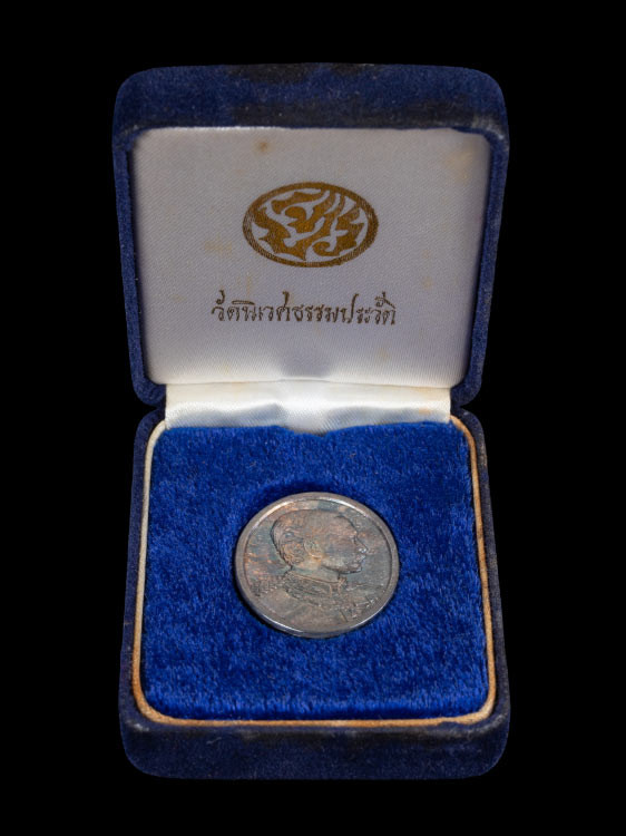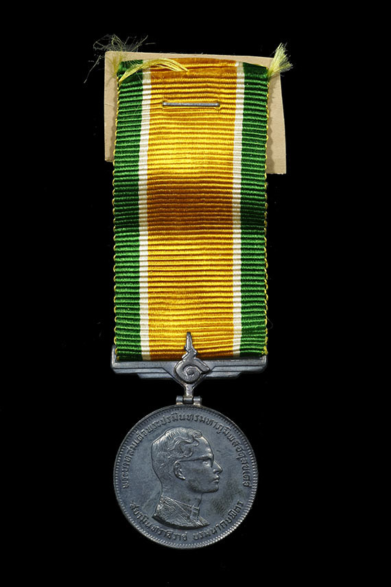 เครื่องราชอิสริยาภรณ์อันเป็นที่เชิดชูยิ่งช้างเผือก ชั้นที่ 6 เหรียญแพรแถบช้างเผือก มปร. เนื้อเงินแท้ (น้ำหนัก 26 กรัม) กะไหล่ทอง พร้อมกล่องเดิม (สำนักเลขาธิการคณะรัฐมนตรี) |