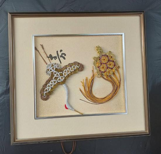 ***วัดใจ***เหรียญ 5 เยน ทำเป็นเครื่องรางนำโชค งานฝีมือแบบญี่ปุ่นดั้งเดิม โดยมีนกกระเรียน และ เต่า พร้อมกรอบโลหะงานเก่า |