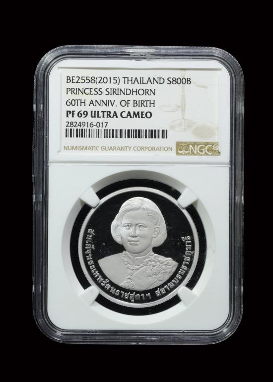 เหรียญเงินขัดเงา 800 บาท สมเด็จพระเทพรัตนรายสุดาฯ.สยามบรมราชกุมารี รางวัลความเป็นเลิศด้านการสร้างสรรค์ 27 สิงหาคม 2558 |