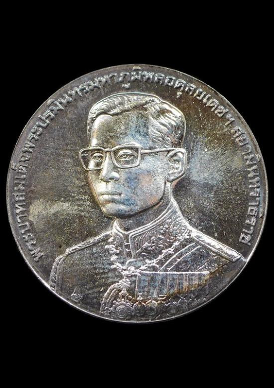 เหรียญในหลวง ฉลองสิริราชสมบัติครบ 50 ปี ศาลยุติธรรม พ.ศ. 2539 เนื้อทองแดงรมดำ สภาพตามรูป ราคาเบาๆ |