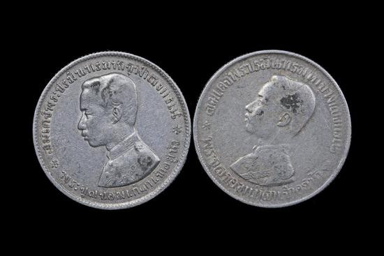 **วัดใจ** เหรียญหนึ่งบาท ร.5 หลังตราแผ่นดิน เนื้อเงิน 2 เหรียญ สวยเดิมๆ หายาก น่าสะสมครับ |