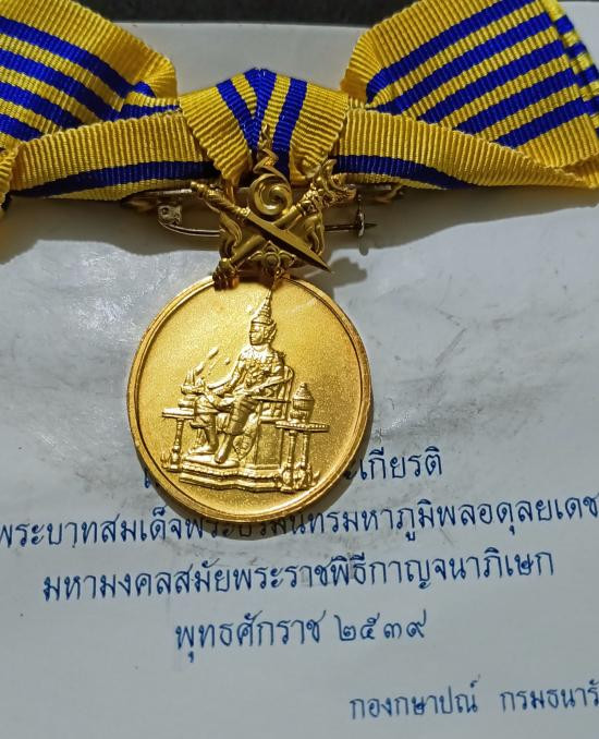 เหรียญแพรแถมเนื้อเงิน กระไหล่ทองรัชกาลที่9 นั่งบัลลัง หลังปีกาญจนาภิเษก |