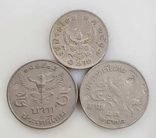 เหรียญสตางค์รูแข้งสิงห์ 5 สตางค์ 2 เหรียญและเหรียญปี 2462 และ 2468 ราคา 1 สลึงรัชกาลที่ 6 (เนื้อเงิน) |