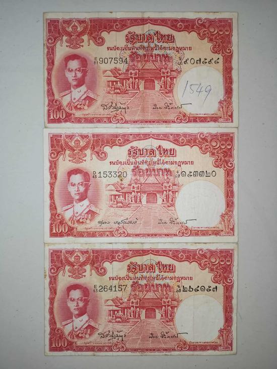 ธนบัตร 100, 500 และ 1,000 บาท ร.9 ผ่านใช้น้อย หมวด S ทุกใบ |