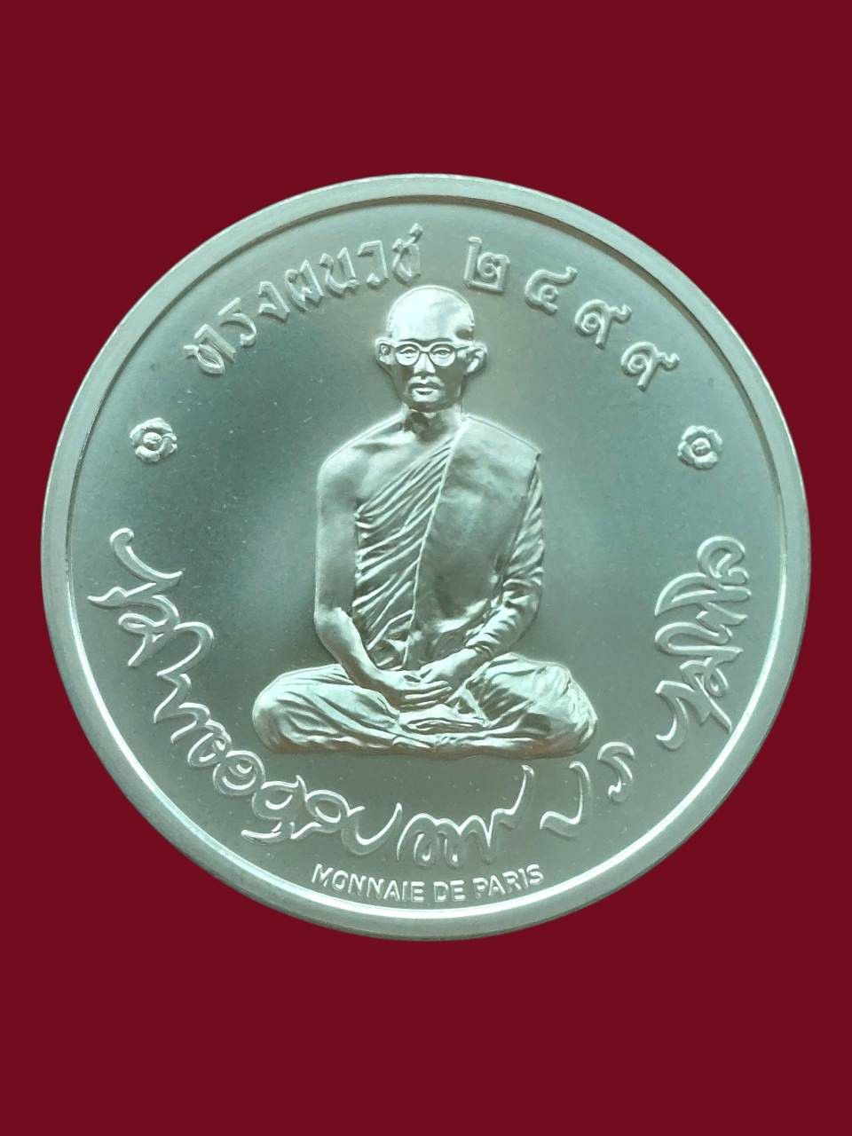 เหรียญทรงผนวช ร.9 ปี2551 โมเน่ เดอร์ ปารีส ขนาด 2.5 ซม. เนื้อเงิน หมายเลข 7834-8551 พร้อมกล่องเดิม |