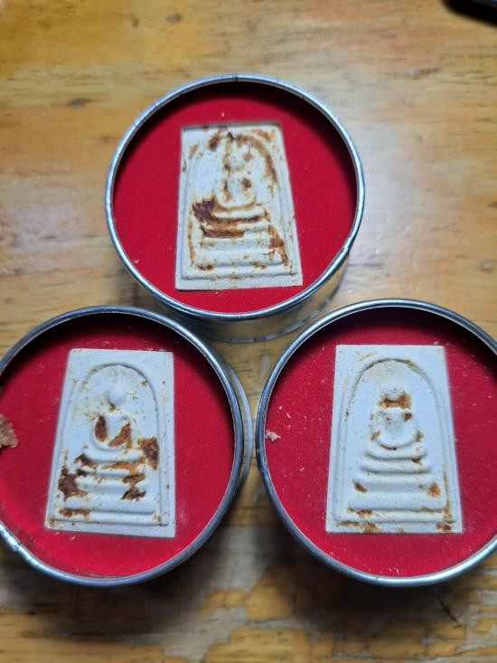 พระสมเด็จ 100 ปี ที่ระลึกสมเด็จสังฆราช วัดบวรนิเวศวิหาร ทรงเจริญพระชนมายุครบ 100 ปี บรรจุมวลสารส่วนพระองค์ ประทานจากสมเด็จพระสังฆราช ฯ คือ พระเกศา พระทนต์ และผงพระเครื่องสำคัญ เคาะเดียวแดง 3 องค์ |