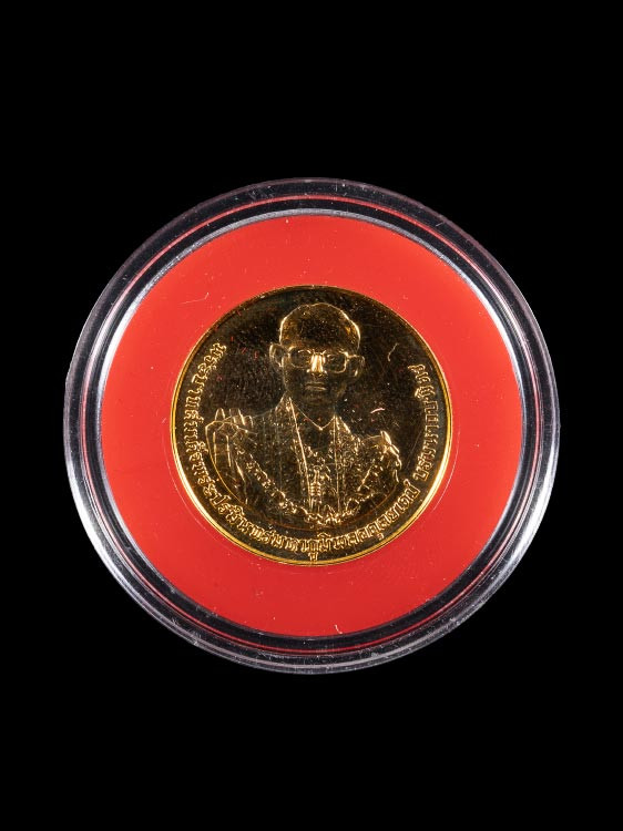 พระบรมฉายาลักษณ์ทองคำ ในหลวงร.9 ทรงเสด็จครองสิริสมบัติครบ 50 ปี ปี 2539 พร้อมฐานไม้ |