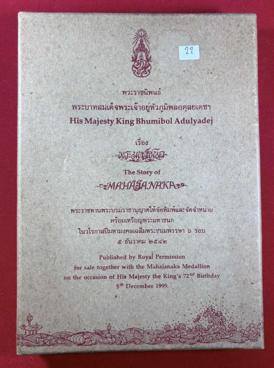 เหรียญพระมหาชนก ปี ๒๕๔๒ เนื้อเงิน พร้อมกล่องและสมุดปกอ่อน ครบชุด สภาพสวยตามรูป |